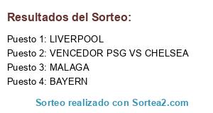 Lista de participantes: BAYERN, MALAGA, LIVERPOOL, VENCEDOR PSG VS CHELSEA.