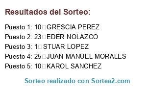 Resultados del sorteo: