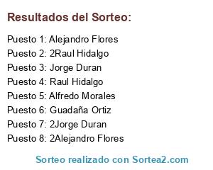 Lista de participantes: Raul Hidalgo, Alejandro Flores, Guadaña Ortiz, Adrian Vazquez, Alfredo Morales, Jorge Duran, 2Raul Hidalgo, 2Alejandro Flores, 2Guadaña Ortiz, 2Adrian Vazquez, 2Alfredo Morales, 2Jorge Duran.