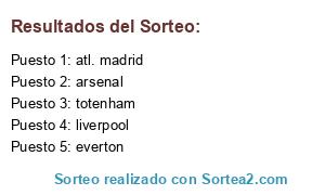 Lista de participantes: liverpool, arsenal, atl. madrid, totenham, everton.