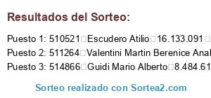 Resultados del sorteo: