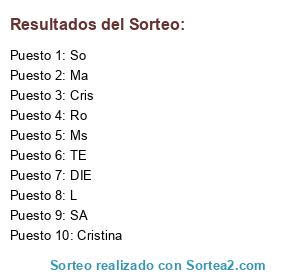 Lista de participantes: Cristina, Cris, L, Ma(2 participaciones), So, Ro, Ms(3 participaciones), TE, SA(2 participaciones), DIE.