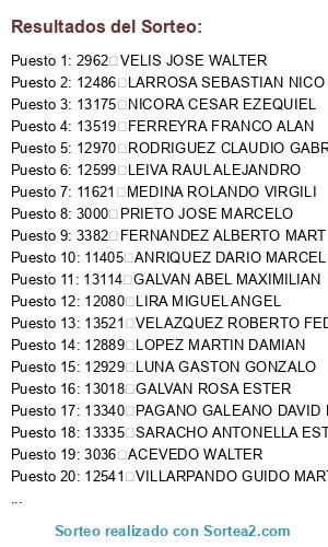 - Puesto 2: 12486 LARROSA SEBASTIAN NICO