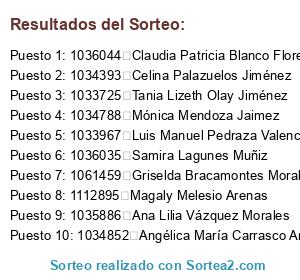 - Puesto 10: 1034852 Angélica María Carrasco Aréchiga