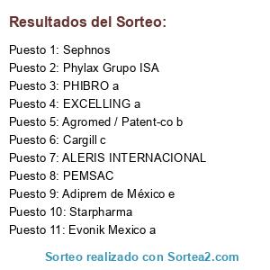 Lista de participantes: Adiprem de México e, Agromed / Patent-co b, ALERIS INTERNACIONAL, Cargill c, Evonik Mexico a, EXCELLING a, PEMSAC, PHIBRO a, Phylax Grupo ISA, Sephnos, Starpharma.