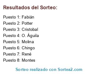 Lista de participantes: Cristobal, Molina, Montes, Fabián, Potter, René, O. Águila, Chingo.
