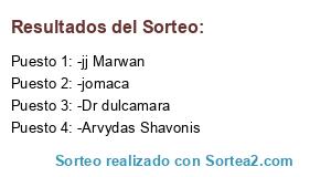 Lista de participantes: -2060157, -Africanus, -animus jocandi, -aremor, -arthas_fito, -arturito109, -Arvydas Shavonis, -axantemirt_guayota, -bleach, -brulot, -Cabello, -carines, -Carlosfergar, -centauro, -Coltus, -cuzar, -Darkbit, -Dasaev, -Dasafean, -Dr dulcamara, -Duncan Ferguson, -elcasco, -el_doctor, -elgala, -ErreHache, -Fanflöid, -Fidel, -Foruu, -Frank Mulder, -Gizmo, -grande1956, -GSX, -Hermanito, -Hispaniola, -Jabonman, -jarl9000, -javierg, -jc2h, -jj Marwan, -Jluis, -jol6, -jomaca, -jorgecg, -juanmpa, -juangg, -kero, -kilgore, -kike32, -Knopfler, -komi, -Malva, -Matusalen, -Miguel5555, -Mindoro, -Moreno X, -Nemesis, -Norishen, -Oberloser, -olemrac, -Patan, -pablomarn, -peke, -pin, -Pohj, -Proyet, -pulidor, -ramonin, -Richard, -Ruron, -Salieri, -Sancho Panza, -Sir_Eider, -squalo, -Superlaro, -ttantto, -Tenso, -trasgo, -Trevize, -unaisamso, -wakeup, -Walllas, -waxo, -yosere, -zomprex, -zumo.