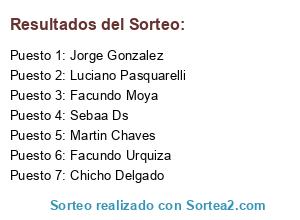 Lista de participantes: Facundo Urquiza, Luciano Pasquarelli, Sebaa Ds, Chicho Delgado, Martin Chaves, Jorge Gonzalez, Facundo Moya.