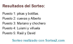 Lista de participantes: cuevas y Alberto, Luismi y viñuela, Mariano y chochero, Raúl y David, pikas y botillas..