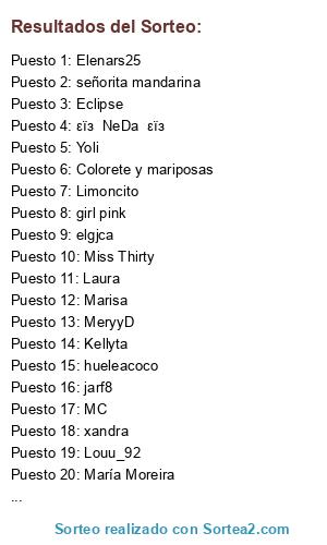 Lista de participantes: ¿qué hay de nuevo, amiga?, Laura(6 participaciones), regly1975(6 participaciones), clara, milagros gonzalez(4 participaciones), Jessi(4 participaciones), Limoncito(3 participaciones), εїз NeDa εїз(2 participaciones), Globetrotter, Miss Thirty(4 participaciones), hueleacoco(5 participaciones), xandra(5 participaciones), Marisa(2 participaciones), Dulce, Manoli(6 participaciones), sofiaesther(3 participaciones), MeryyD(4 participaciones), elgjca(4 participaciones), María Moreira(2 participaciones), kelika(5 participaciones), sissuka(4 participaciones), Elenars25(6 participaciones), Yoli(2 participaciones), Mary, girl pink(2 participaciones), Mariquititas Rojas(2 participaciones), Naishi(2 participaciones), jarf8(5 participaciones), MC(3 participaciones), Colorete y mariposas(6 participaciones), 7191mariposa(3 participaciones), Eclipse(6 participaciones), maya_07(2 participaciones), Sheila(4 participaciones), El Diario de Suesi(3 participaciones), Pinceladas(6 participaciones), Carol(2 participaciones), señorita mandarina, Raaainbow(2 participaciones), Kellyta(3 participaciones), Natalia Cuello(4 participaciones), Gabriela(4 participaciones), MªCarmen(2 participaciones), Cristii92(5 participaciones), Louu_92(2 participaciones).