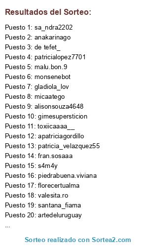 Lista de participantes: adriana.canepa.984, alicentauri, alisonsouza4648, anakarinago, ange_echaides, antonella.agesta.3, antonellagarcia8, aparicio1939, aparicio1939, apatriciagordillo, artedeluruguay, bel.marrero, beraraujo321, ca_lu19, cardozolaura79, carenvdfg, cariviba, claudia.aguirre3, claudia.silvera.7370, elisamiraldo, elisamiraldo, eluniversoesdecolores, fagundezdahiana, fagundezdahiana, fagundezdahiana, fleitasscamila, floraarias, florecertualma, fran.sosaaa, frippg_, gabriblanchetpe, gimesupersticion, gladiola_lov, gladiola_lov, gladiola_lov, gladiola_lov, iliana276, jeanettcristina, jeni_a_o, jennifer.ocampo.72, jesscardozosantos, julietaekker, july.gamboa, la_de_rulos_negros, labenjaminaarte, laurafrancia1979, lavidadevictoriag, liachmend15, llanes688, lorenaetchegoyen, luchiinfante, ludmicarbajal_18, m.a.k.r.e.n.a, magitas, mai_garcia045, malu.bon.9, marcelaalvarez6511, marcelaalvarez6511, marcescarpa74, marcescarpa74, mariadelhuertoferreyra, mariahaydeetroncoso, mariajnose, martimendez85, melissasimone21, merniesmaria, merniesmaria, mica_canessa, micaatego, milipacheco16, moirarijo, monica.ayala.reikista, monsenebot, natyybragaa, nebotlucia, nuryborgessilva, pam_reisch, paolanunezviera, patricia_velazquez55, patricia030712, patricialopez7701, patricialopez7701, patricialopez7701, patricialopez7701, patricialopez7701, patricialopez7701, patricialopez7701, patricialopez7701, patricialopez7701, paudecuadra, pendula.siempreoscilando, perez__tania, piedrabuena.viviana, rako_4875, raquel.laurent, rinconcito_de_luz07, s4m4y, s4m4y, s4m4y, sa_ndra2202, sagriela, sandraarodriguezzz, santana_fiama, santana_fiama, silvana.g21, sofiagarciapages, tatiana_franconoble, tatiana_franconoble, de tefet_, de tizzifernandez, toxiicaaaa__, toxiicaaaa__, toxiicaaaa__, valesita.ro, virmadredetres, vivi._.oli, vycarte.