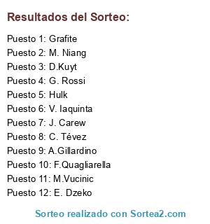 Lista de participantes: A.Gillardino, C. Tévez, M. Niang, M.Vucinic, V. Iaquinta, F.Quagliarella, G. Rossi, E. Dzeko, J. Carew, Hulk, D.Kuyt, Grafite.