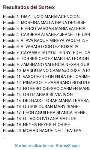 - Puesto 40: TUMBACO CASTRO RAMONA NELLY