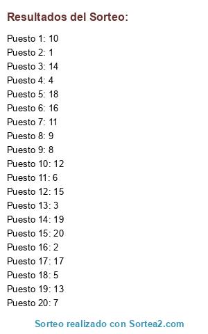 Lista de participantes: 1, 2, 3, 4, 5, 6, 7, 8, 9, 10, 11, 12, 13, 14, 15, 16, 17, 18, 19, 20.