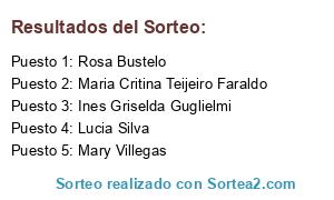 - 1º lugar ~ 1500 carbón o 50 boletos: Rosa Bustelo
