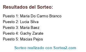 - 1º lugar ~ 1500 carbón o 50 boletos: Maria Do Carmo Branco