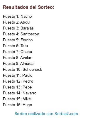 Resultados del sorteo: