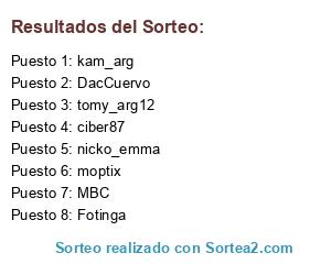 Lista de participantes: moptix, ciber87, kam_arg, Fotinga, tomy_arg12, nicko_emma, MBC, DacCuervo.