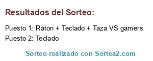 Lista de participantes: Nada, Raton, Raton y Teclado, Raton + Teclado + Taza VS gamers, Raton + teclado + Taza VS Gamers + Camiseta VS, Teclado.