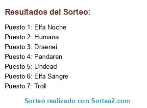 Lista de participantes: Humana, Elfa Noche, Elfa Sangre, Pandaren, Draenei, Undead, Troll.