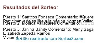 - Ganador 1: Santitos Fonseca Comentario: #QueremoConsentirte Participen y delen like a la página Norman Valladares Gabriel Valladares Dalis S Valladares primero Dios ganemos el combo 1 así disfrutar con mi familia
