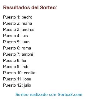 Lista de participantes: cecilia, maria, andres, julio, fer, roma, indi, luis, pedro, juan, jose, antoni.