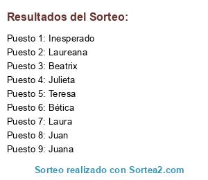 Lista de participantes: Julieta, Laura, Beatrix, Teresa, Juan, Juana, Inesperado, Bética, Laureana.