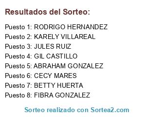Lista de participantes: GIL CASTILLO, ABRAHAM GONZALEZ, FIBRA GONZALEZ, RODRIGO HERNANDEZ, BETTY HUERTA, CECY MARES, JULES RUIZ, KARELY VILLAREAL.