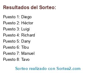 Lista de participantes: Tavo, Dany, Tibu, Manuel, Diego, Héctor, Luigi, Richard.