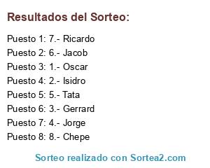 Lista de participantes: 1.- Oscar, 2.- Isidro, 3.- Gerrard, 4.- Jorge, 5.- Tata, 6.- Jacob, 7.- Ricardo, 8.- Chepe.