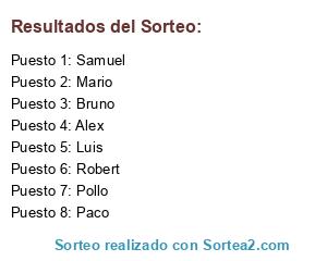 Lista de participantes: Samuel, Mario, Bruno, Alex, Luis, Robert, Pollo, Paco.