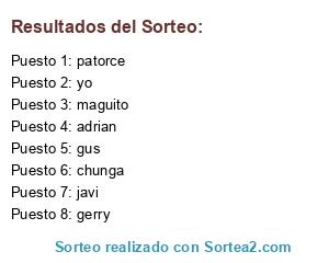 Lista de participantes: patorce, chunga, gus, yo, adrian, gerry, javi, maguito.
