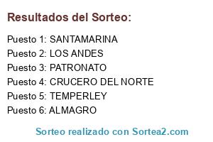 Lista de participantes: ALMAGRO, TEMPERLEY, SANTAMARINA, CRUCERO DEL NORTE, PATRONATO, LOS ANDES.