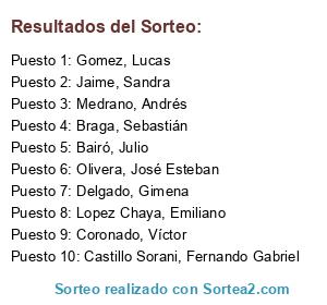Resultados del sorteo: