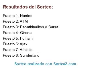 Lista de participantes: Panathinaikos o Barsa, Nantes, Athletic, Girona, ATM, Ajax, Fulham, Sunderland.