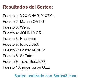Lista de participantes: Wers:, Tuzo Squalo22:, FosterJAVIER:, X2X CHARLY X7X :, JOHN10 CR:, Icaroz 360:, ManueiOMFG:, jorge pulpo Gzz:, Eliasindio:, Sr Tato:.