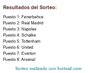 Lista de participantes: Real Madrid, Fenerbahce, Everton, Tottenham, United, Arsenal, Schalke, Napoles.