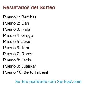 Lista de participantes: Jacin, Bembas, Rober, Juankar, Jose, Dani, Rafa, Gregor, Berto Imbesil, Toni.