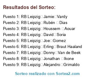 Lista de participantes: RB Leipzig Mikel Merino, RB Leipzig Jules Kounde, RB Leipzig Jonathan Ikone, RB Leipzig Erling Braut Haaland, RB Leipzig Jadon Sancho, RB Leipzig Jamie Vardy, RB Leipzig Alejandro Grimaldo, RB Leipzig Diogo Jota, RB Leipzig Houssem Aouar, RB Leipzig Tiago Emanuel Embaló Djaló, RB Leipzig Pervis Josué Estupiñán Tenorio, RB Leipzig Fede Valverde, RB Leipzig David Neres, RB Leipzig David Soria, RB Leipzig Rubén Dias, RB Leipzig Yan Couto, RB Leipzig Joe Gomez, RB Leipzig Nordi Mukiele, RB Leipzig Donny Van de Beek, RB Leipzig Daniel Olmo, RB Leipzig Yusuf Demir, RB Leipzig Emil Audero, RB Leipzig Moussa Diaby.