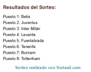 Lista de participantes: Tenerife, Levante, Fuenlabrada, Betis, Inter Milán, Buriram, Tottenham, Juventus.
