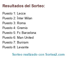 Lista de participantes: Buriram, Man United, Fc Barcelona, Gremio, Roma, Lecce, Ínter Milan, Levante.