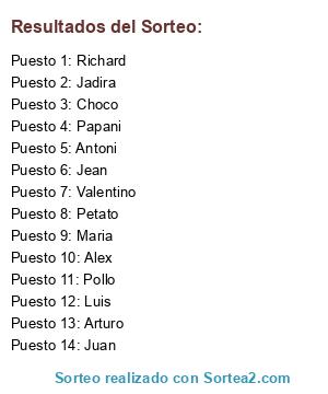 Resultados del sorteo: