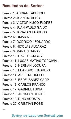 Resultados del sorteo: