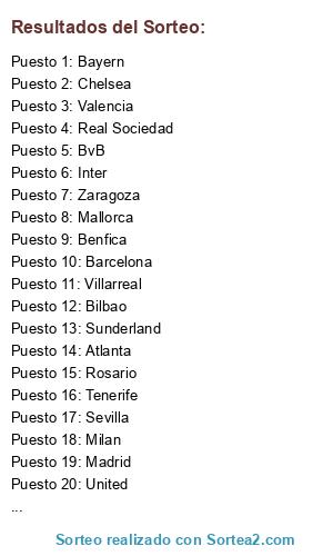 Resultados del sorteo: