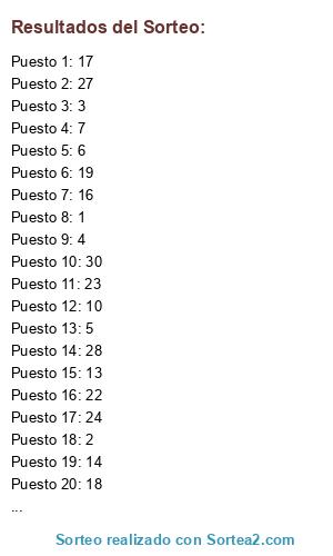 Resultados del sorteo: