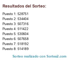 Este sorteo ha sido certificado por Sortea2. Sortea2 garantiza que: