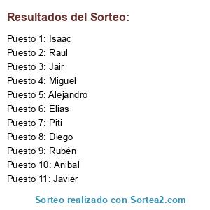 Lista de participantes: Jair, Isaac, Anibal, Alejandro, Javier, Piti, Miguel, Raul, Diego, Rubén, Elias.