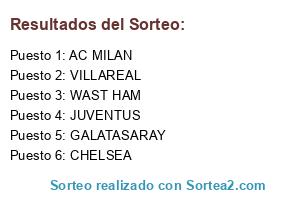 Lista de participantes: AC MILAN, JUVENTUS, CSKA MOSCU, VALENCIA, WAST HAM, CHELSEA, GALATASARAY, PORTO, VILLAREAL.