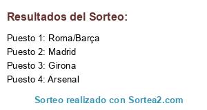 Lista de participantes: Arsenal, Madrid, Girona, Roma/Barça.