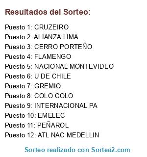 Lista de participantes: CRUZEIRO, FLAMENGO, GREMIO, INTERNACIONAL PA, PEÑAROL, NACIONAL MONTEVIDEO, CERRO PORTEÑO, ALIANZA LIMA, EMELEC, COLO COLO, U DE CHILE, ATL NAC MEDELLIN.